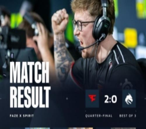 易邊再戰,手槍局FaZe全員來B,寒王與總監各取雙殺,FaZe拿到第11分。次回合Spirit強起守住B點,donk拿到AK第15回合雙殺,Spirit將比分追至11-5。回到長槍,FaZe三顆煙霧彈強打A點得手,donk拆包未果,FaZe拿到賽點。最終donk與Sh1ro先送首殺,FaZe輕鬆13-5拿下圖二淘汰Spirit,晉級半決賽。