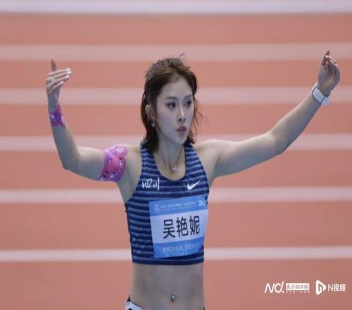 吳豔妮預賽第三組出發,憑借強勁後程輕鬆拿下小組頭名。