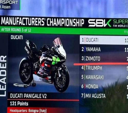 荷蘭站比賽結束,張雪機車目前在WSBK製造商積分榜排名第三